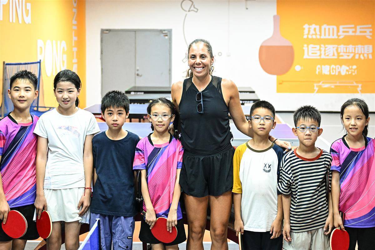 10月9日,武网参赛球员朱利亚娜·奥尔莫斯来到武汉市光谷第十七小学,与小学生们打乒乓球,切磋球艺。