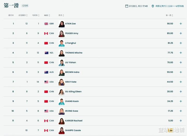 在本次开脱式滑雪女子U型时势手段决赛,刘奕杉第2位启程,获70.00分暂列第5;张可欣第7位启程时跌倒诞妄,仅得24.25分;李方慧第11位启程,斩获81.25分排行第3。