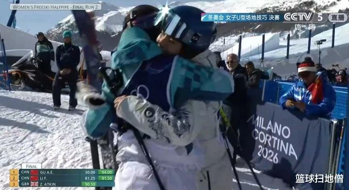 第二轮,李方慧再度发力,以91.50分升至第2,仅次于谷爱凌;完成动作后,她与场边的谷爱凌缓和拥抱,让咱们看到了中国女将的领略。