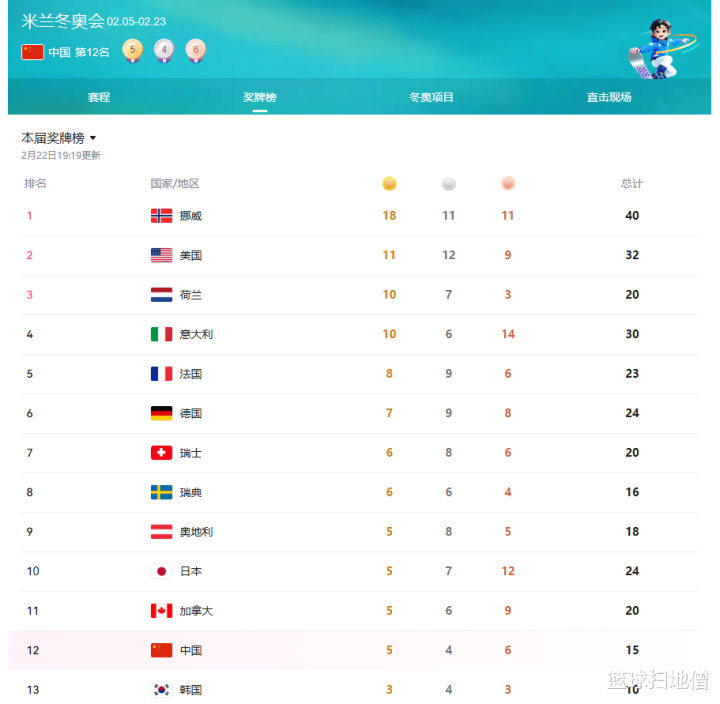 2月22日是米兰冬奥会第16个金牌日,亦然收官之日,当日奖牌榜风光趋于踏实,共有29个国度和地区置身榜单。挪威队以18金11银11铜、觉得40枚奖牌的统共上风稳居榜首,刷新单届冬奥会金牌记录。好意思国队、荷兰队、意大利队分列二至四位,其中荷兰队凭借冰上项磋议强势阐扬反神人意大利。