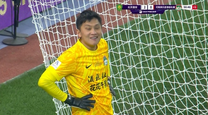 直播吧12月06日讯 足协杯决赛,北京国安vs河南。比赛伤停补时阶段,北京国安得回点球,法比奥第一次主罚被王国明扑出,但VAR介入判定王国明莫得站在门线上,国安得回重罚契机,王国明对此显得也颇为无奈。
