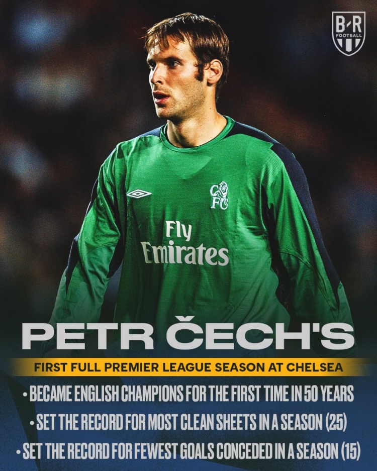 切赫在2004年夏天以1300万欧元从雷恩加盟切尔西,当赛季他为切尔西坐镇球门,单赛季英超仅丢15球且野心完成25场零封,随队取得了切尔西50年来首座顶级联赛冠军。
